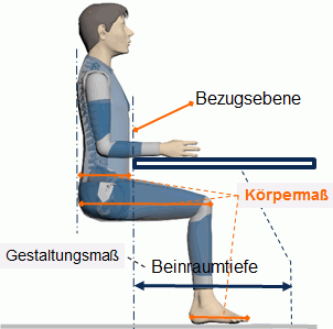 - Anwendungsbeispiel: Raumanforderungen für die Beine an einem Sitzarbeitsplatz